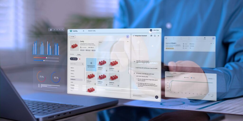 TrAInity macht Ihr Team in Stunden KI-fähig: eigene Produkte anlernen, an der Linie deployen und jeden Schritt überwachen & automatisch dokumentieren. Kein Inselsystem – ein Produkt, das sich in Ihre Prozesse einklinkt und von Anfang an an Shopfloor-Dialoge anschließt.
